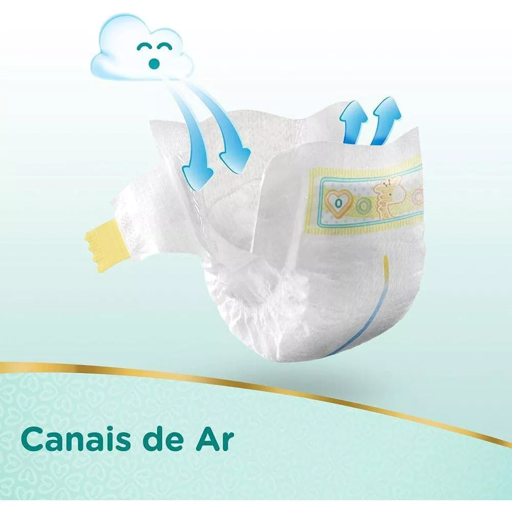 Pampers Premium Care Recém-Nascido conta ainda com uma camada super absorvente que afasta a umidade e o cocô da pele do seu bebê.