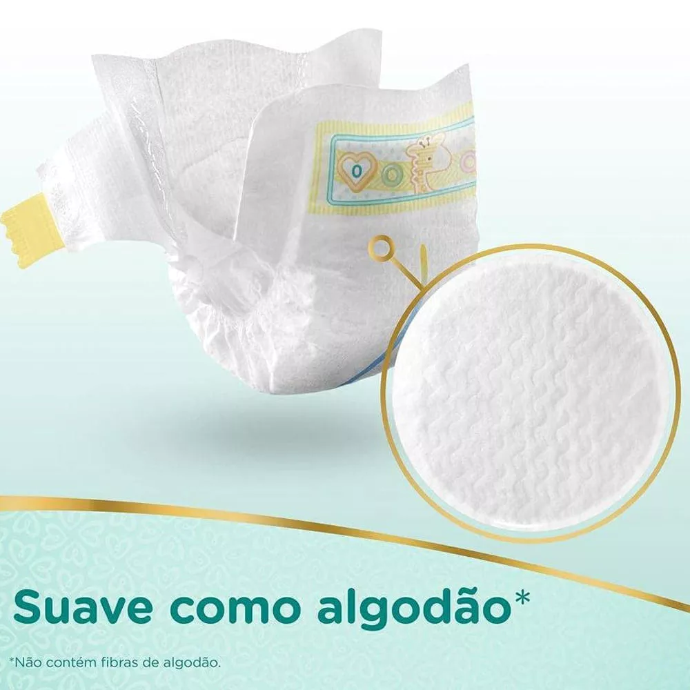 A Fralda Pampers Premium Care Recém-Nascido é suave como algodão para ajudar a cuidar da pele delicada do seu bebê, proporcionando uma pele sequinha por muito mais tempo.