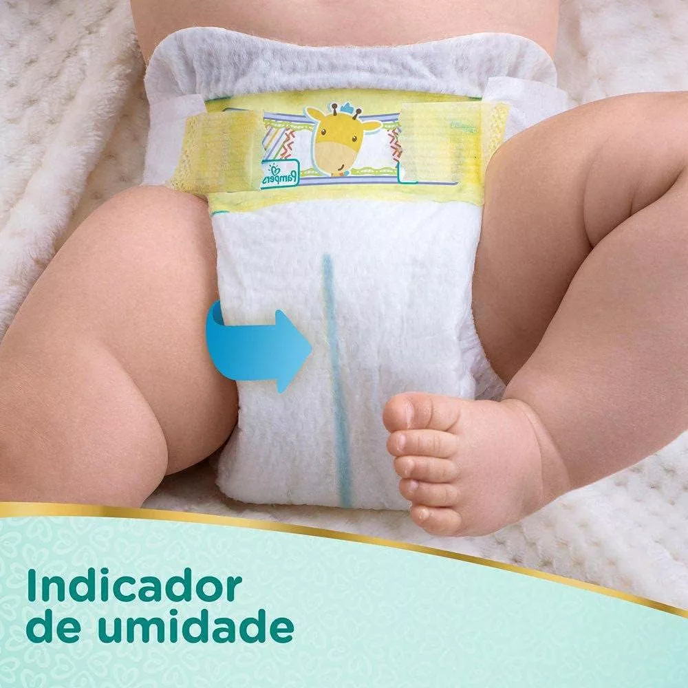 Desenvolvida com indicador de umidade que te avisa quando o bebê tem que ser trocado. Corte umbilical que protege a delicada barriguinha. Ajuste confortável e flexível que se adapta ao corpo do recém-nascido. Além de exclusiva loção protetora que ajuda a prevenir irritações.